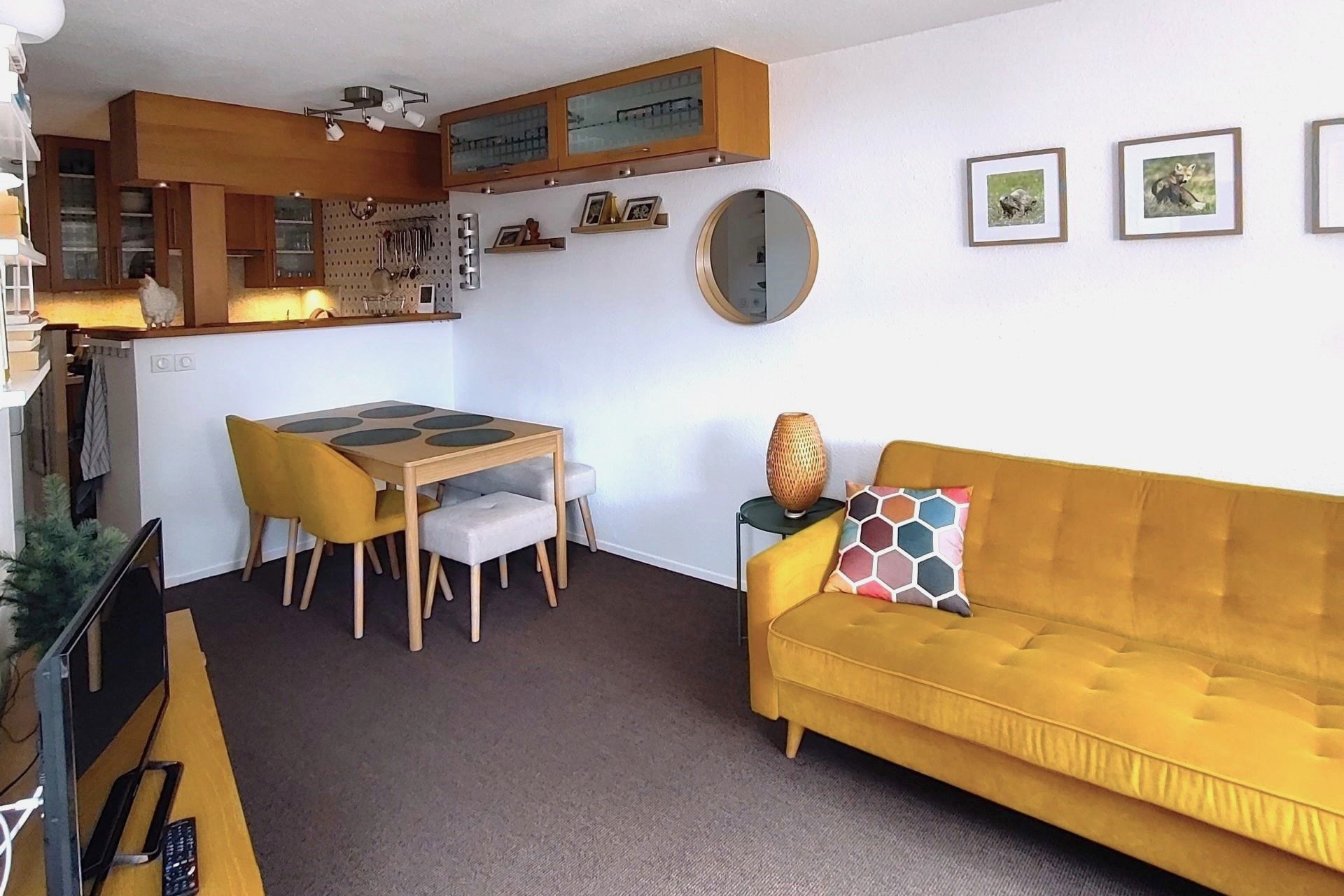 Classified 2 stars in furnished of tourism, it is pleasantly decorated and arranged in a Vintage Industrial style with furniture and Factory objects to enjoy a Retro atmosphere during your family or friendly holidays. It is cozy, functional and sunny due to its double South/South-West exposure with a nice view of the mountains and the resort.